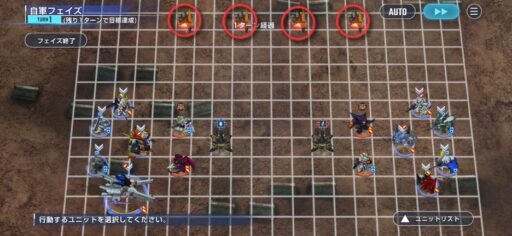 全ての敵を倒す必要はないので、2ターン目に登場するΞガンダムとペーネロペーを撃破してクリアとなります