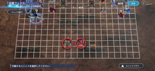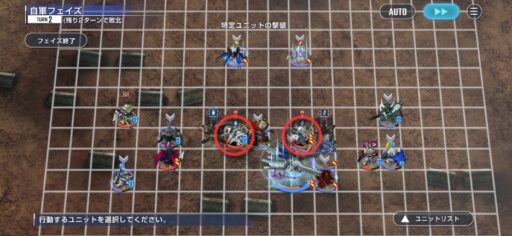 騎士ガンダムを画像位置に移動させて待機。攻撃はしなくて大丈夫です