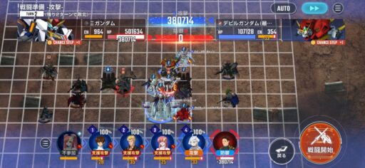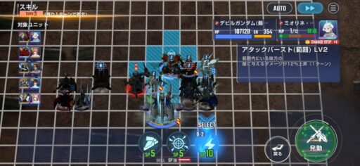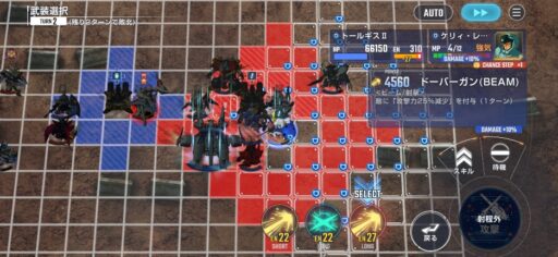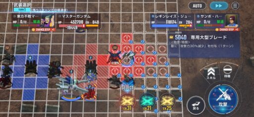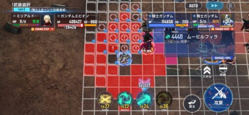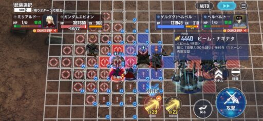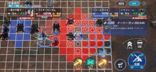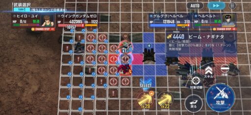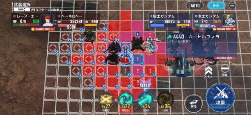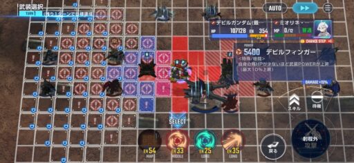 デビルガンダムを画像位置に移動させてΞガンダムを攻撃