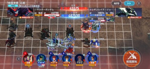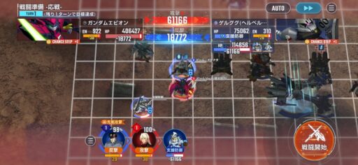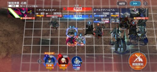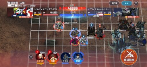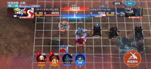 ゲルググが攻撃されるので支援防御を入れながら先制攻撃をしましょう