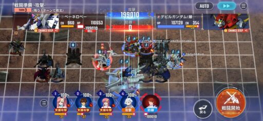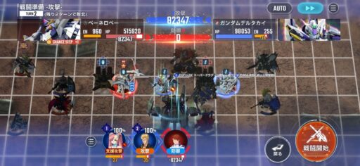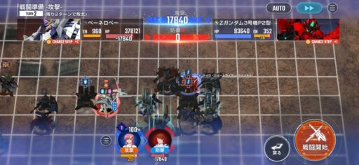 支援攻撃にはZガンダム3号機P2型の防御力減少デバフを入れて総攻撃しましょう