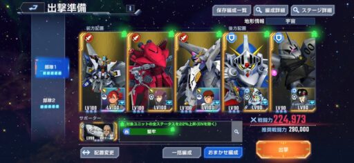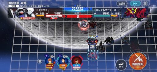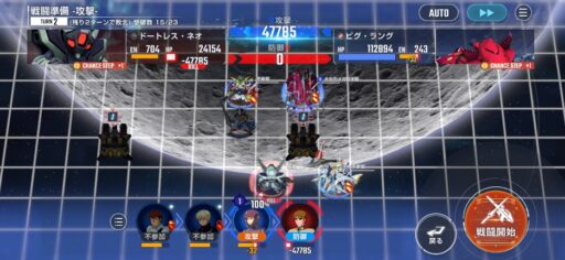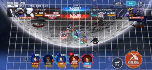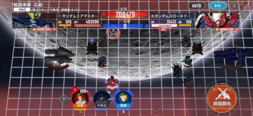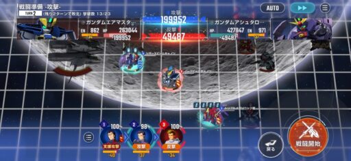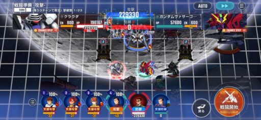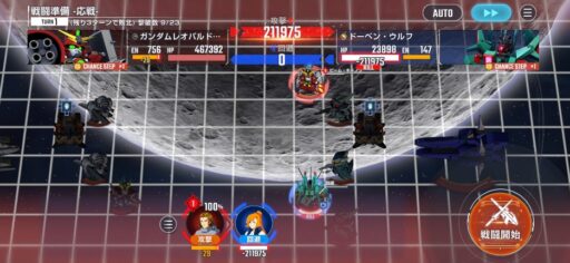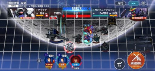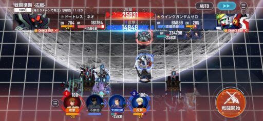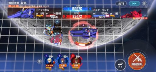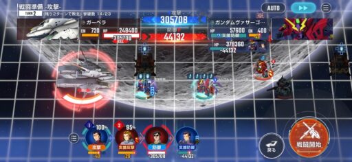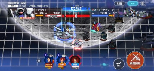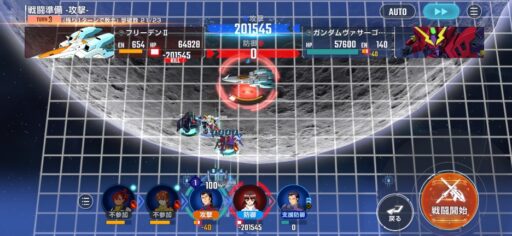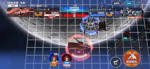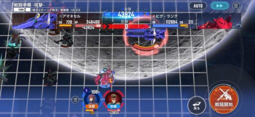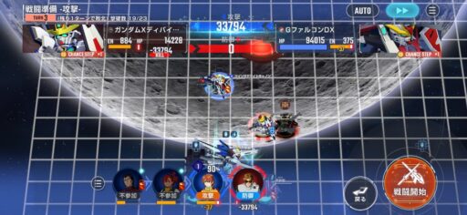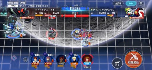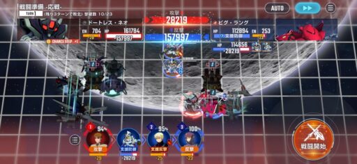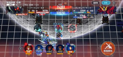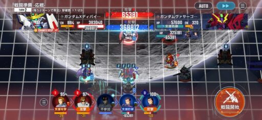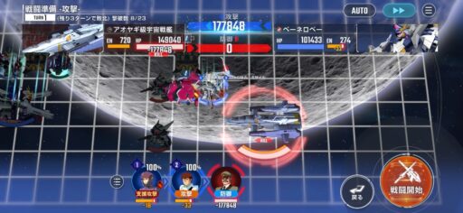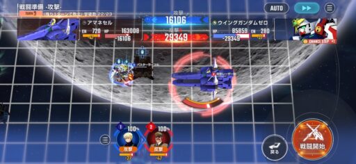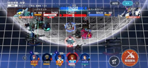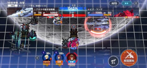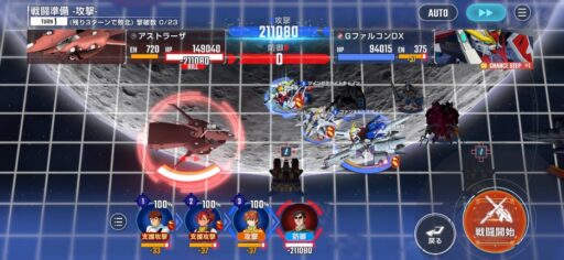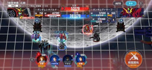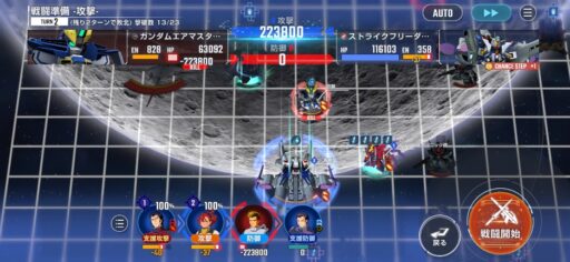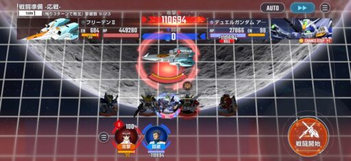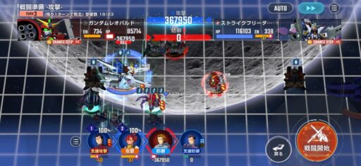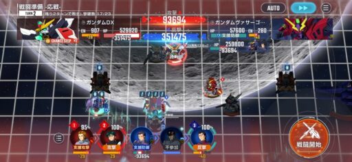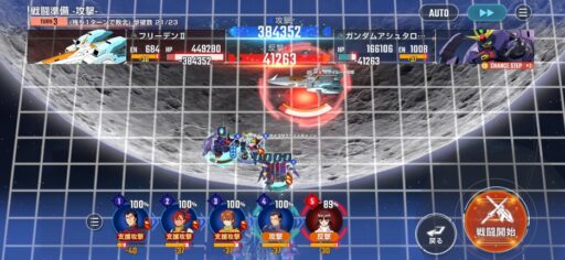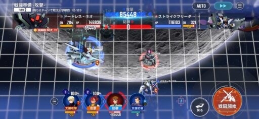 URの凸が進んでいて編成力に自信のある人は1ターン目に敵戦艦(フリーデン)とガンダムDXの撃破を狙うのも有効です