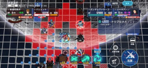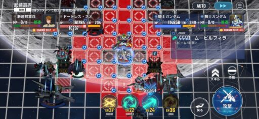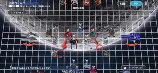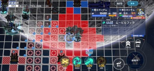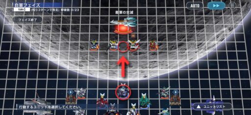 騎士ガンダムを画像位置に移動させて待機。攻撃はしなくてOKです