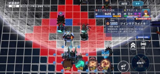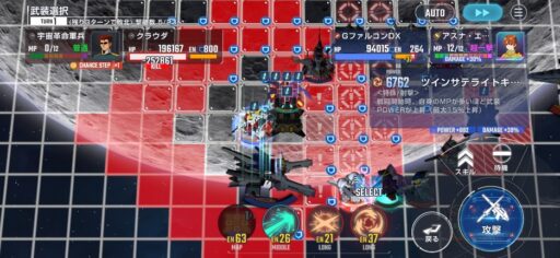 MPアップスキルを使用したGファルコンDXを下に移動させて画像位置にいるアストラーザを撃破