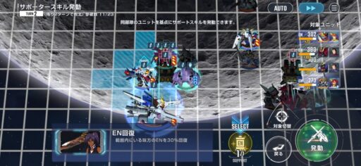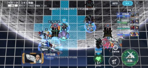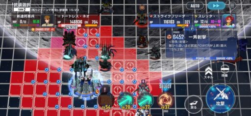 ウイングゼロを画像位置に移動させてドートレスを撃破。支援は必要な分だけ入れましょう