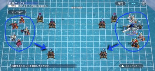 フラウロスを画像位置に移動させて白いガンダムを総攻撃して削ろう