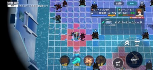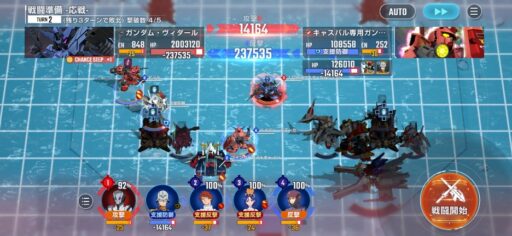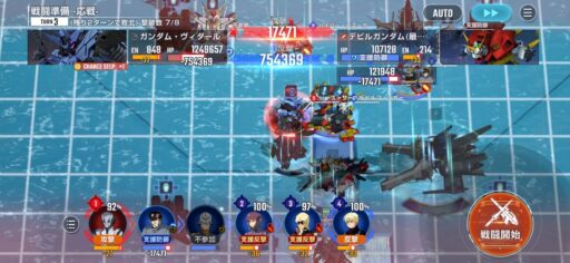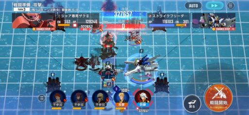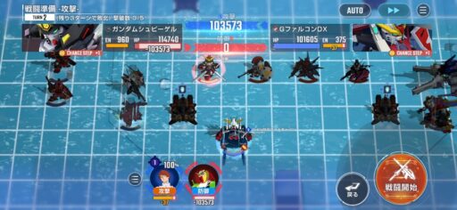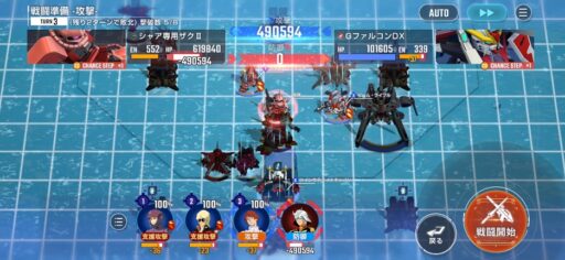 GファルコンDXを画像位置に移動させて支援を全て入れてシャア専用ザクを攻撃しましょう