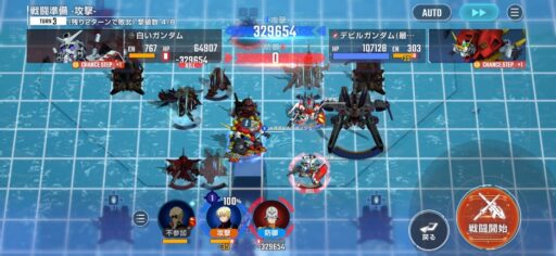 デビルガンダムを画像位置に移動させて白いガンダムを撃破
