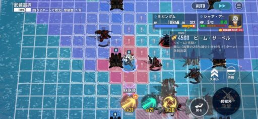 キャスバル専用ガンダムを画像位置に移動させてシュピーゲルを撃破