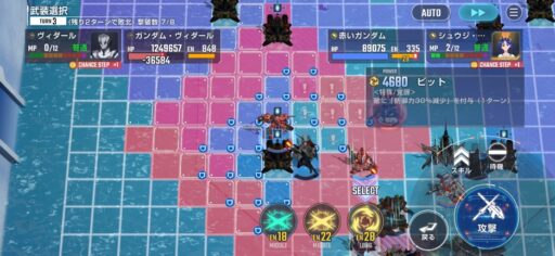 フルアーマーガンダムMk-Ⅲを画像位置に移動させて赤いガンダムの支援を入れてヴィダールに攻撃しよう