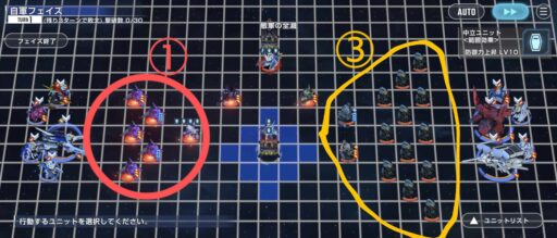 そうすることで支援防御の敵に防御力デバフを付与することができて、部隊2の手助けになります