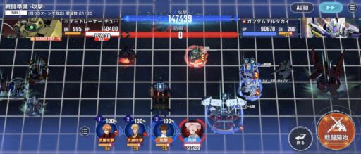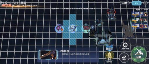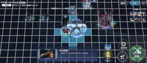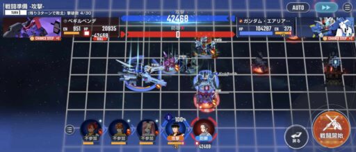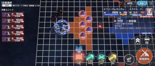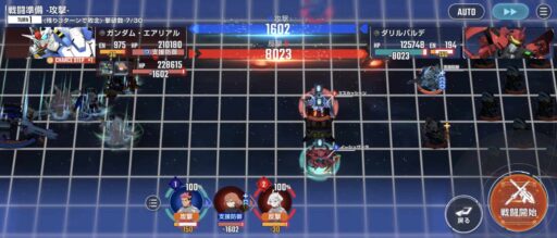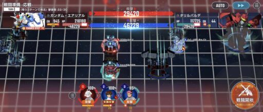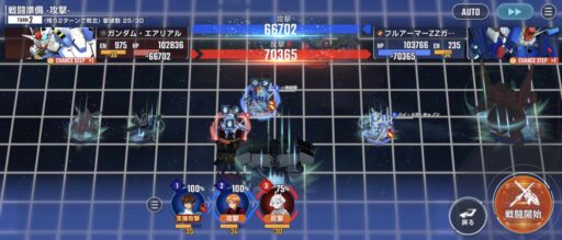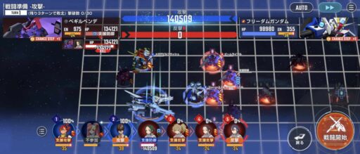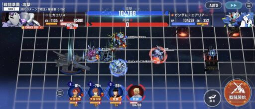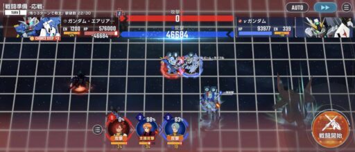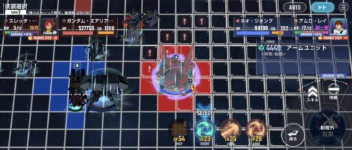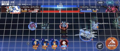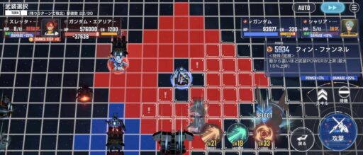 νガンダムを上部にある攻撃力UPマスに移動させてそこからエアリアル改修型に支援攻撃込みで攻撃をする