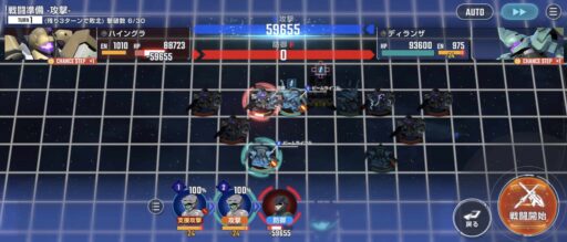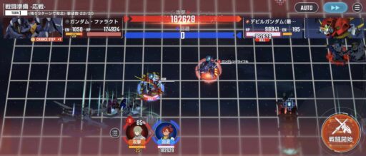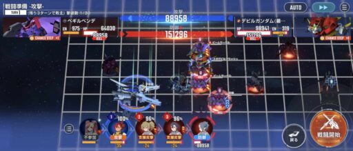 アタックバースト使用後にデビルガンダム最終形態を画像位置に移動させて、そこから支援防御の敵を撃破する