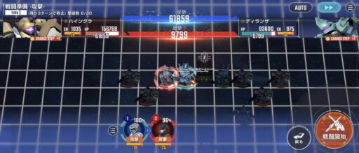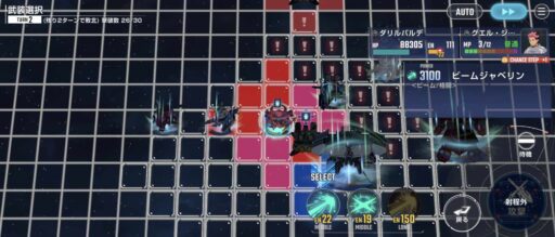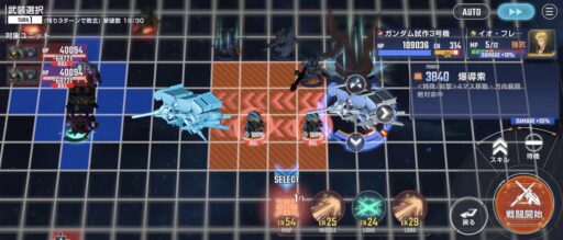 アタックバースト使用後にガンダム試作3号機を移動させて画像位置の敵を撃破する
