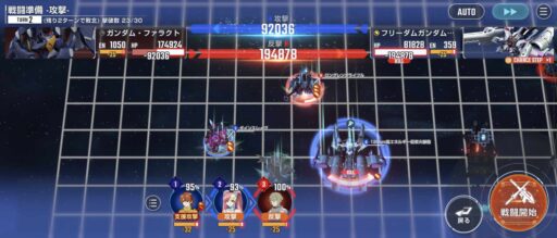 フリーダムミーティアで防御力デバフを付与する。やられてしまいますが問題ないです