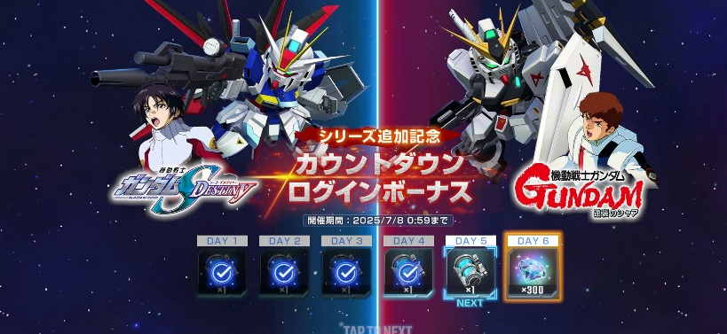 ジージェネ エターナル シリーズ追加記念ログインボーナス SEED DESTINY&逆襲のシャア