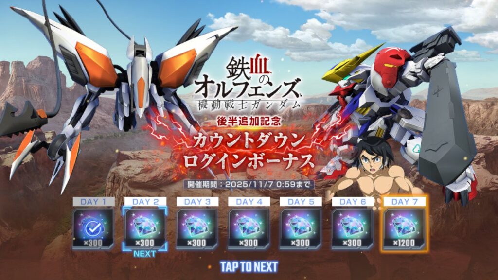 ジージェネ エターナル 鉄血のオルフェンズ カウントダウン ログインボーナス