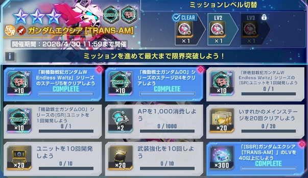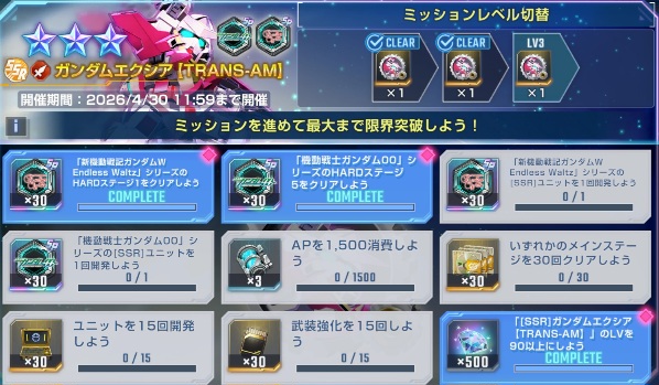 報酬 ガンダムエクシア(TRANS-AM)限界突破素材 ×1