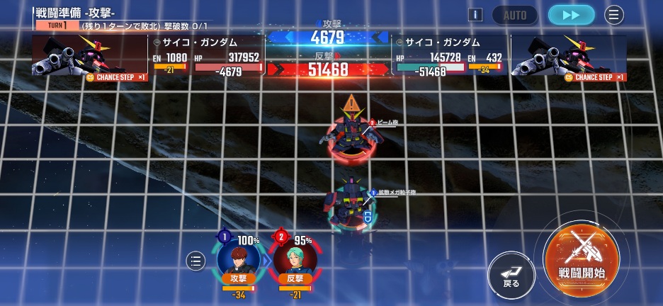 サイコガンダムを画像位置に移動させて、サイコガンダムを攻撃