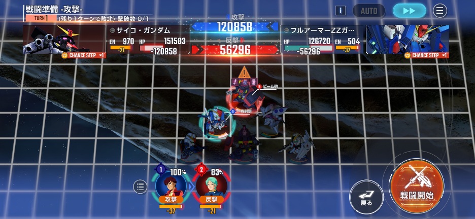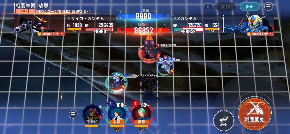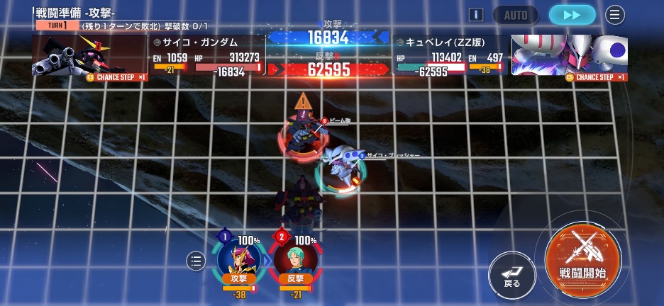Zガンダムを画像位置に移動させてサイコガンダムを攻撃