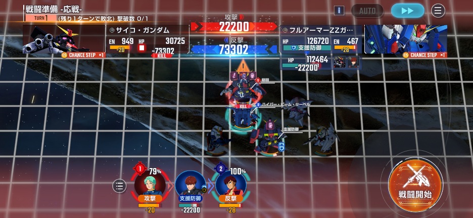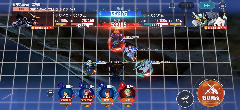 サイコガンダムが攻撃してくるので、支援防御を入れて反撃して倒しましょう