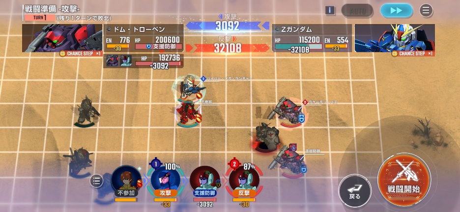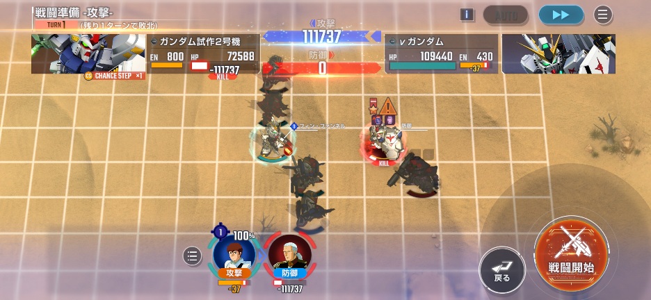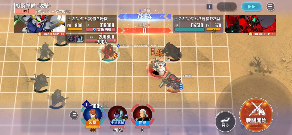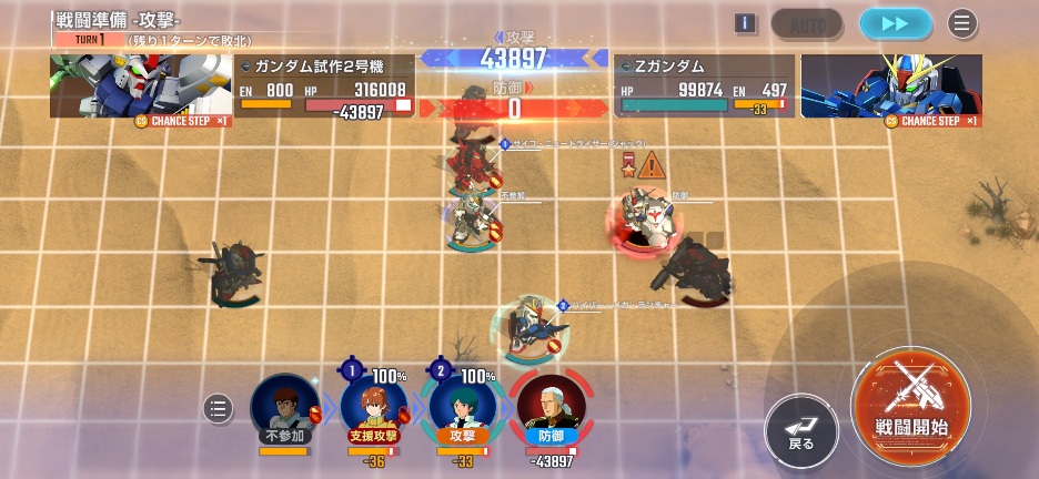 Zガンダム(カミーユ)を画像位置に移動させて試作2号機を攻撃