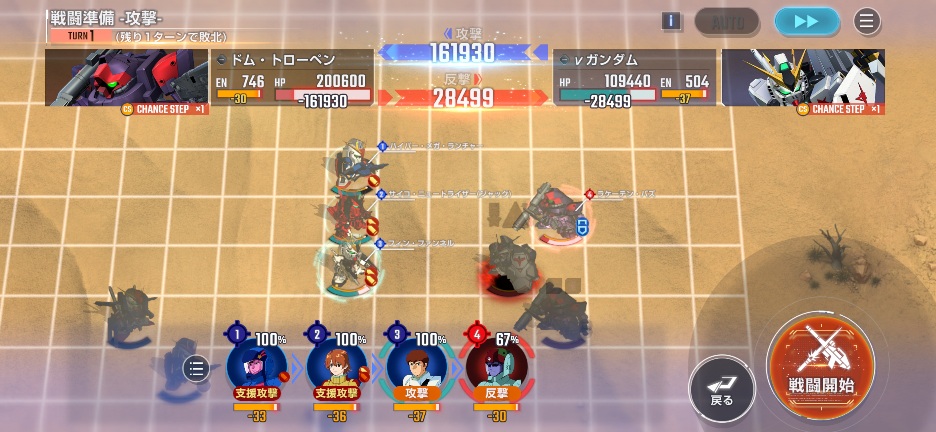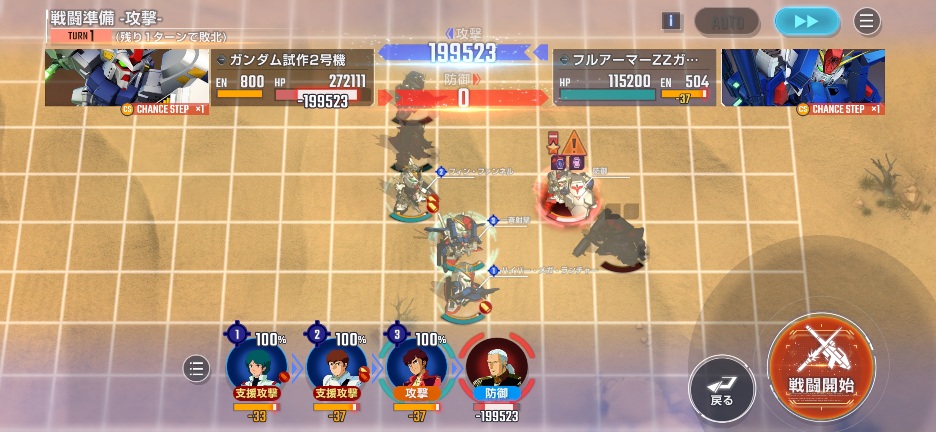 この時にνガンダムの支援攻撃を間違えて外しているので、支援攻撃に参加させても大丈夫です