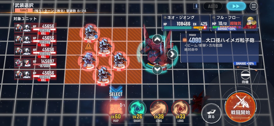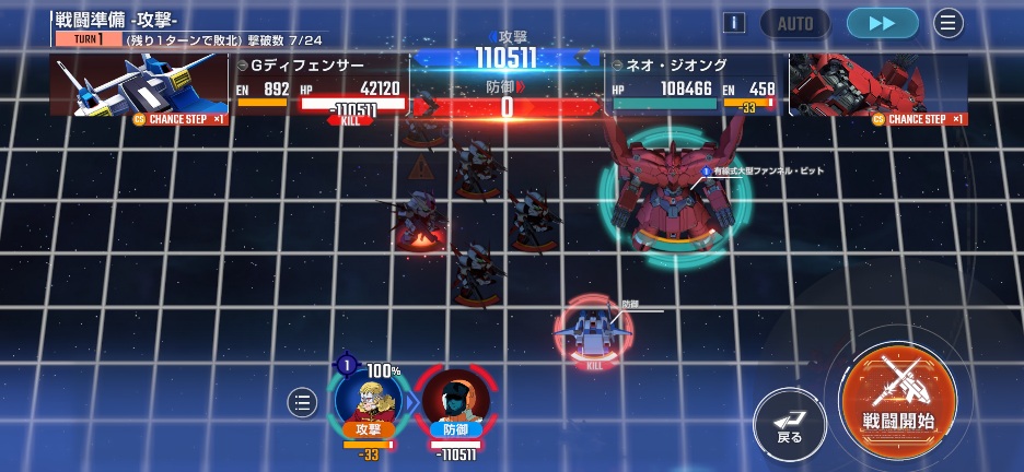 ネオジオングを画像位置に移動させて、Gディフェンサーを攻撃