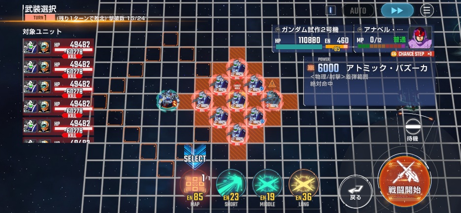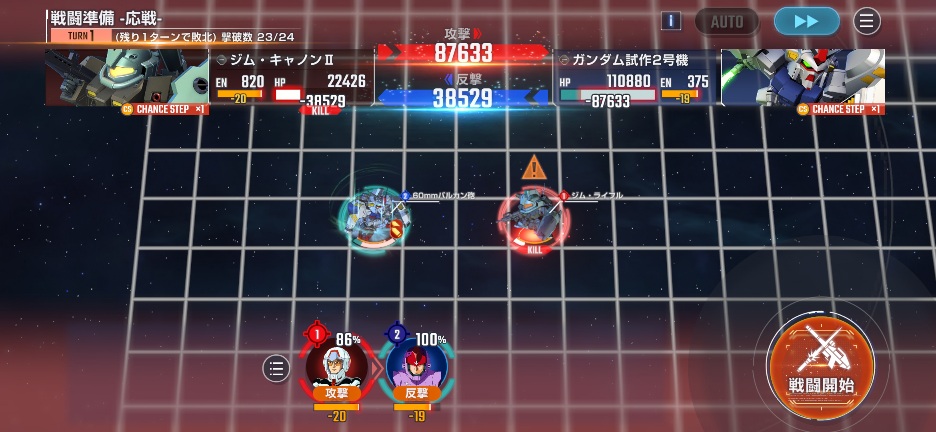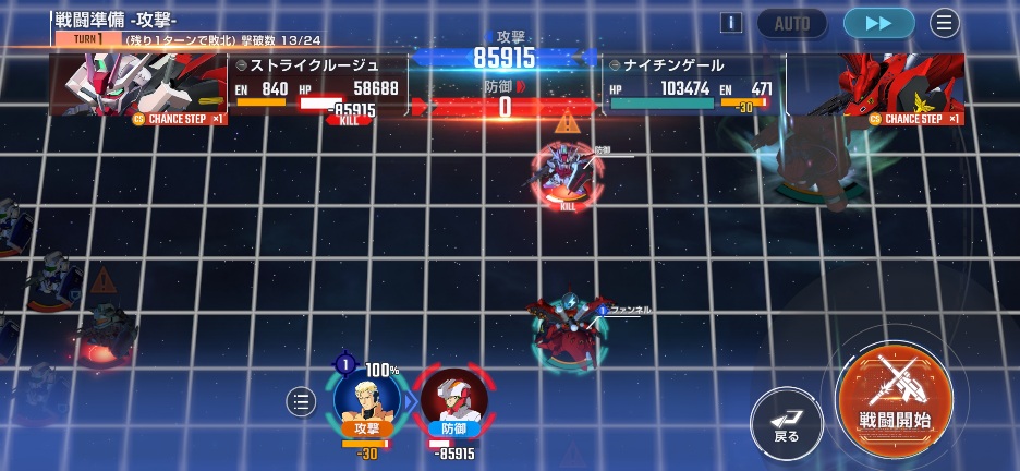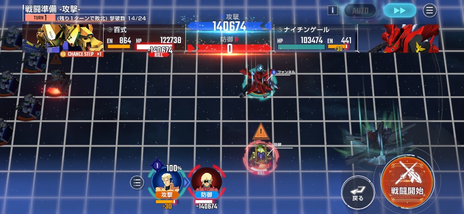 ナイチンゲールを画像位置に移動させて、百式を攻撃