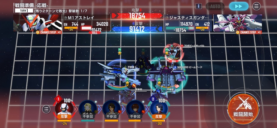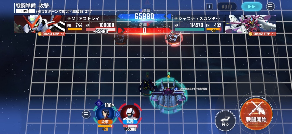 ジャスティスミーティアを画像位置に移動させてM1アストレイを攻撃
