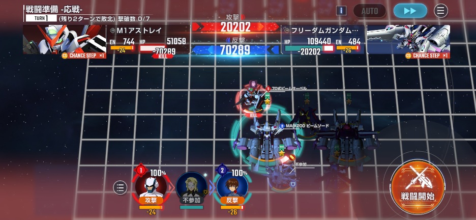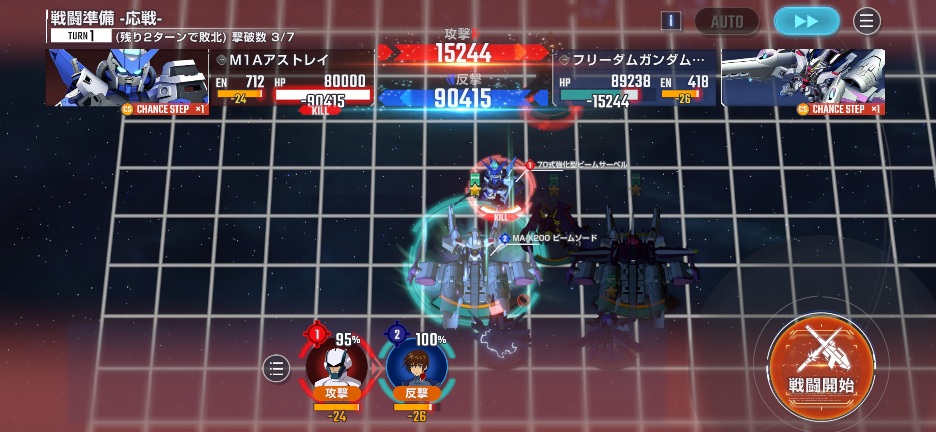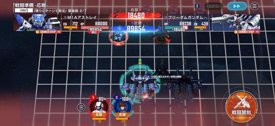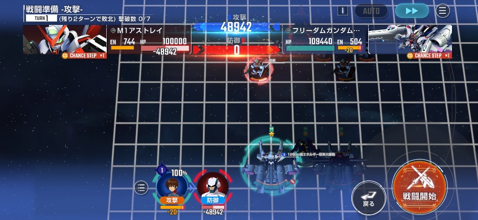 フリーダムミーティアを画像位置に移動させてM1アストレイを攻撃