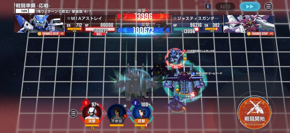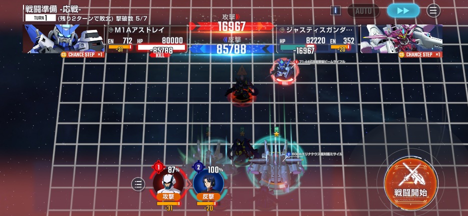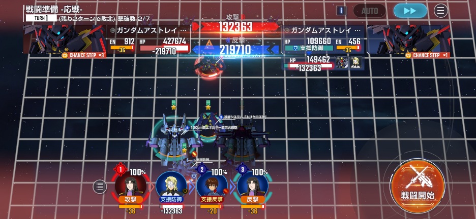 敵のゴールドフレームが攻撃してくるので、支援防御と支援反撃を入れて反撃しましょう