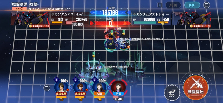 ゴールドフレームを画像位置に移動させて支援攻撃を全て入れて攻撃