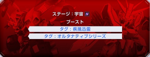 今回は疾風迅雷タグまたはオルタナティブシリーズの機体が特効効果でステータス50%上昇を得ることが出来る