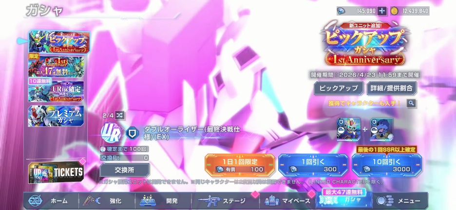 限界突破素材をダブルオーライザーに使って完凸にしようかな
