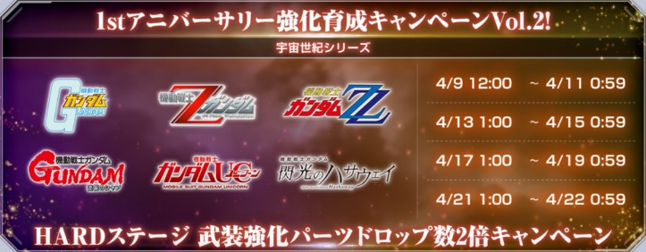 2026年4月9日(木)12:00から1stアニバーサリー強化育成キャンペーンVol.2開始が開始されます