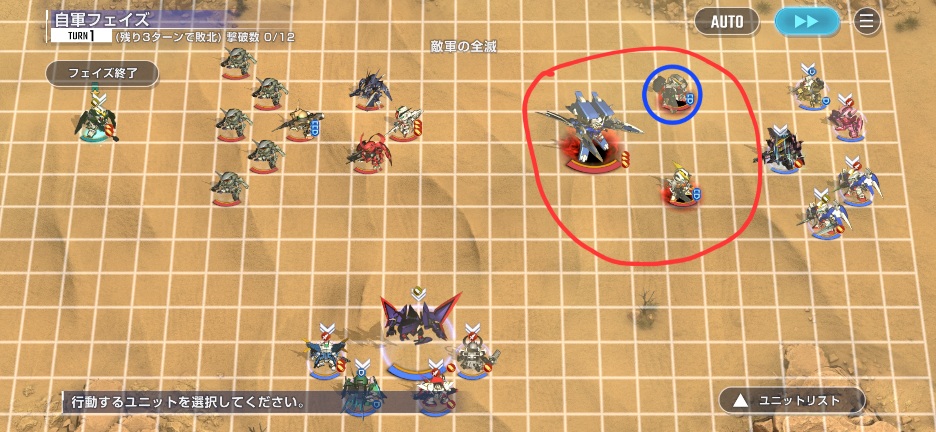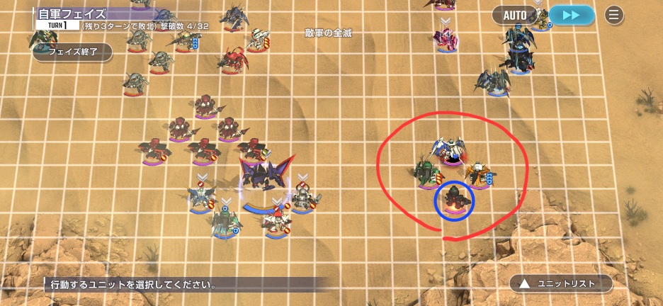 青◯で囲われている敵はこちらにデバフをかけてくるので優先的に倒します