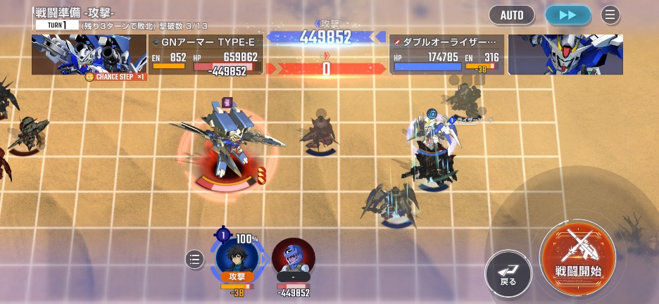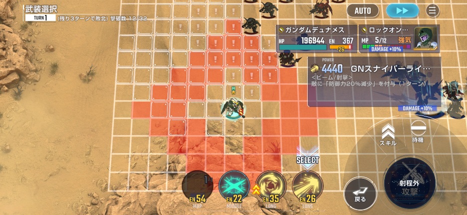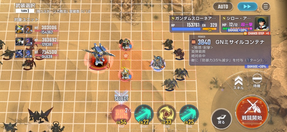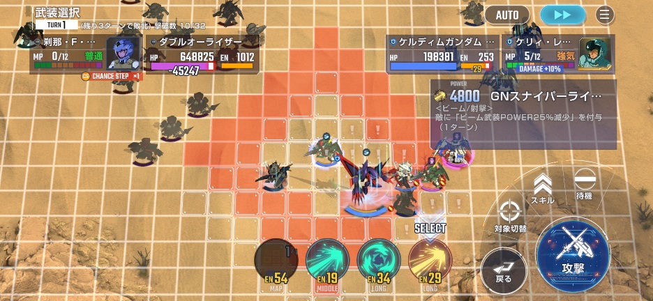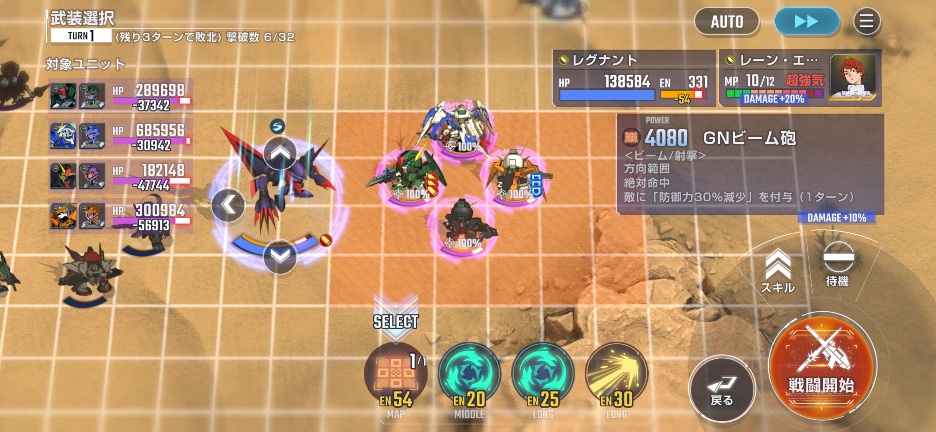 ガンダムエクシア【TRANS-AM】を画像位置に移動させてGNアーマーを撃破