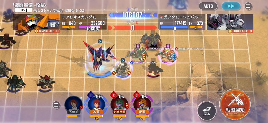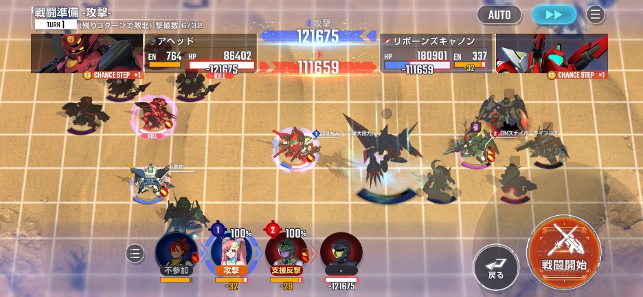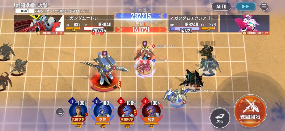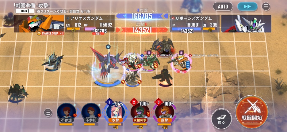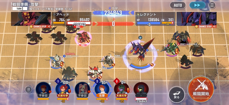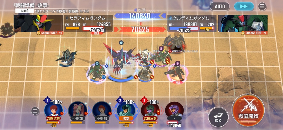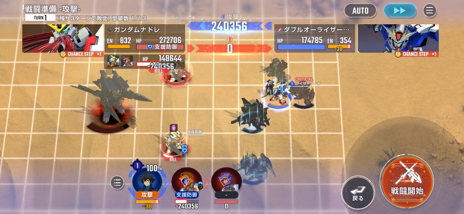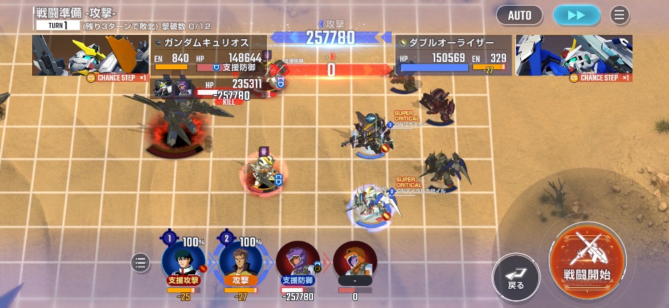 キュリオスが支援防御に入ってくるのでそのまま倒しましょう