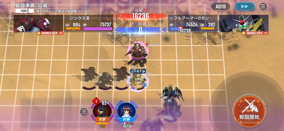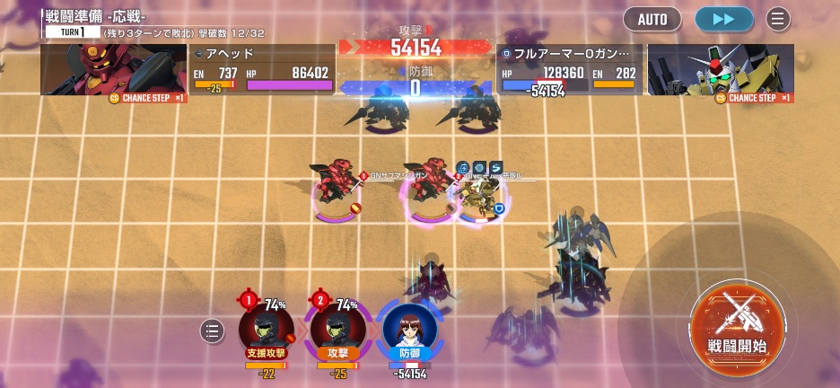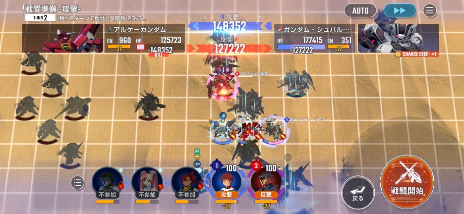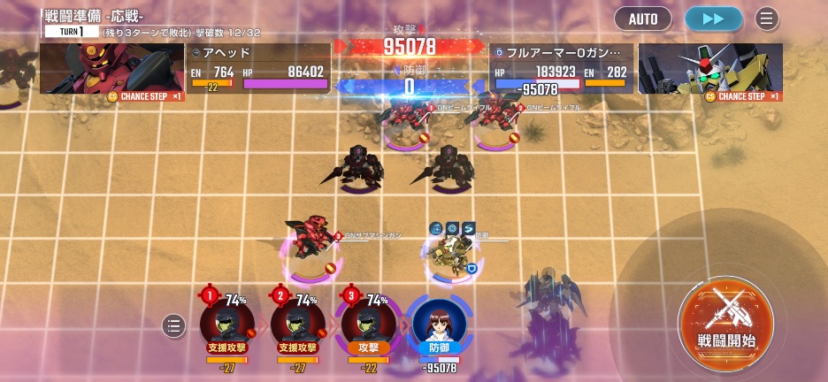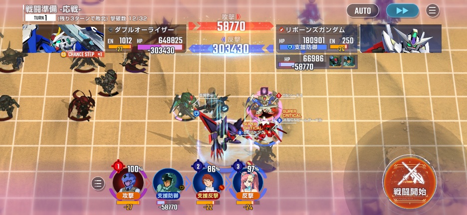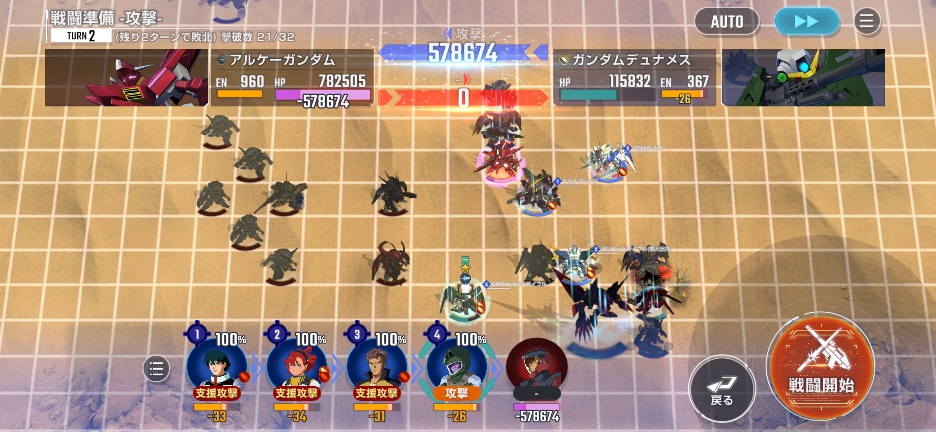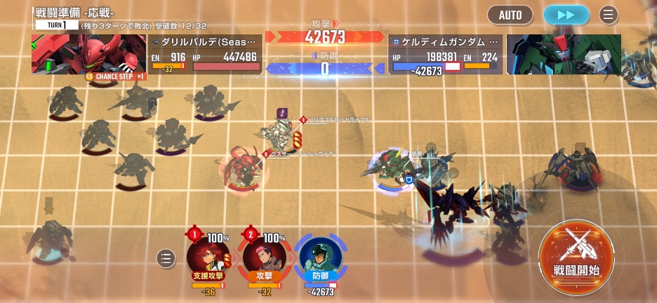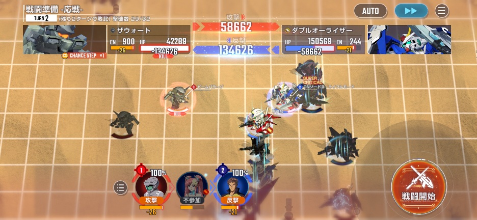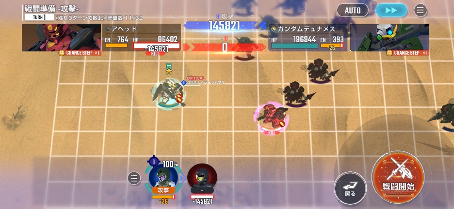 キュリオスが支援防御に入ってくるのでそのまま倒しましょう