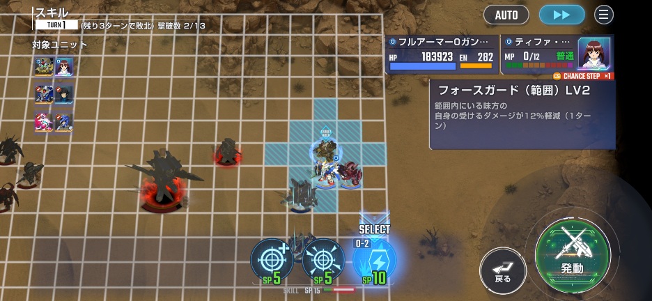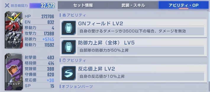 フルアーマー0ガンダムで命中率・回避率上昇とフォースガードを忘れずに使用しておきましょう