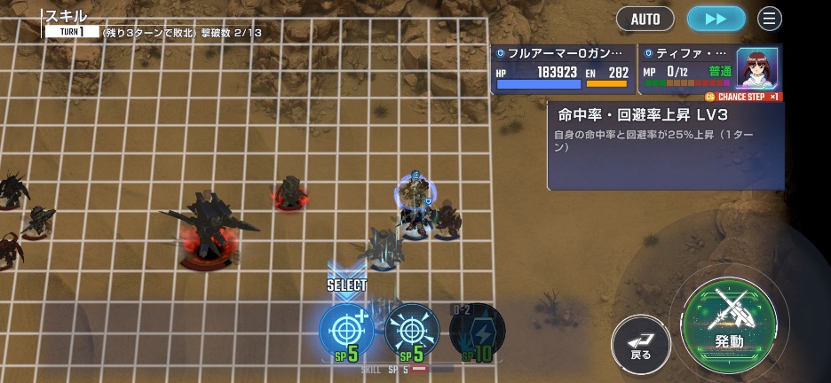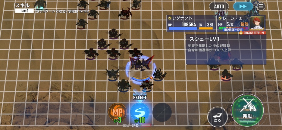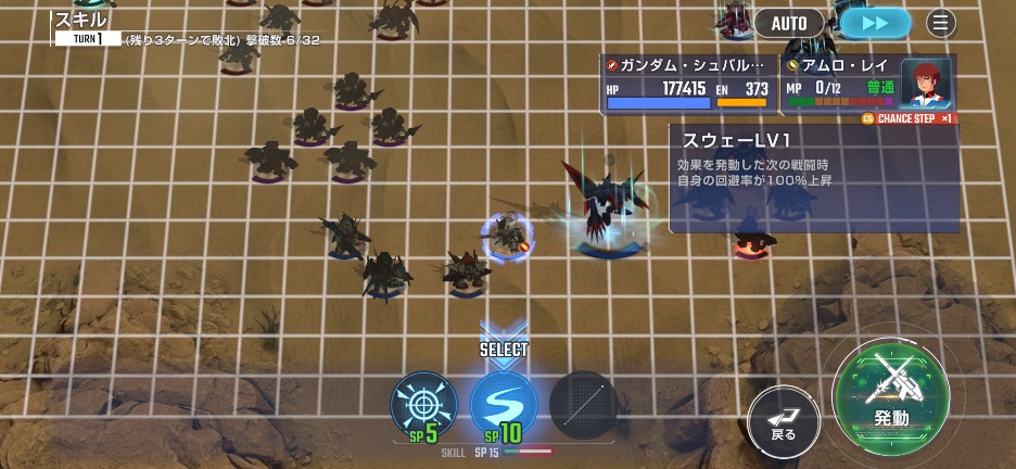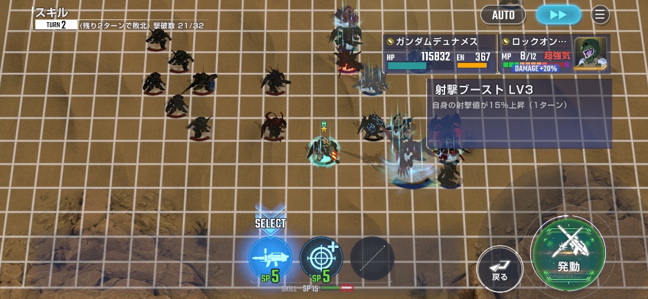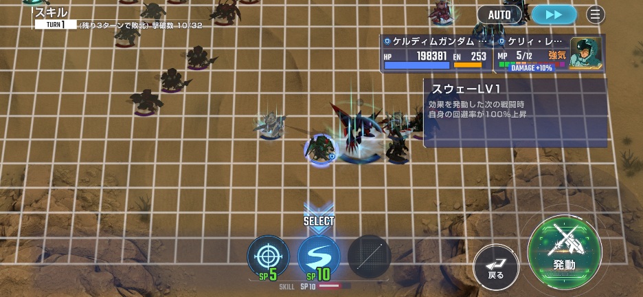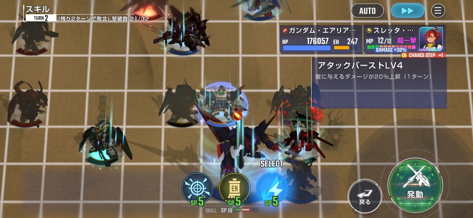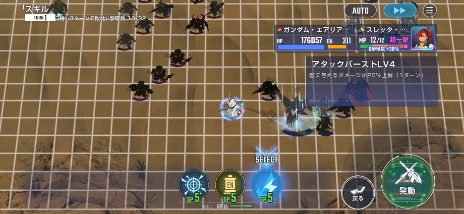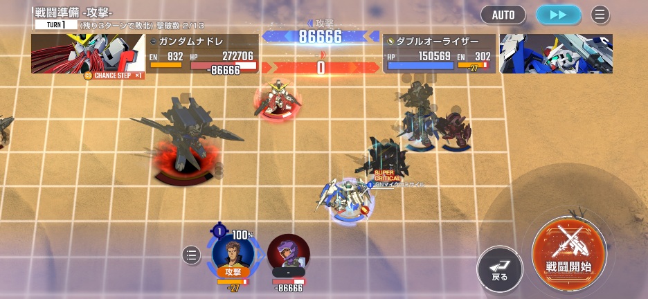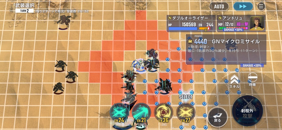 ダブルオーライザーを画像位置に移動させてナドレを攻撃して防御デバフを付与しましょう