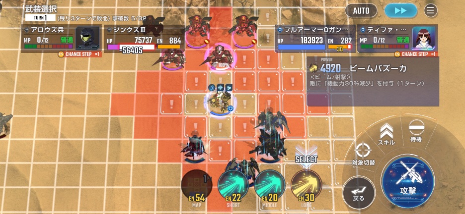 スローネを画像位置に移動させてジンクスⅢを撃破
