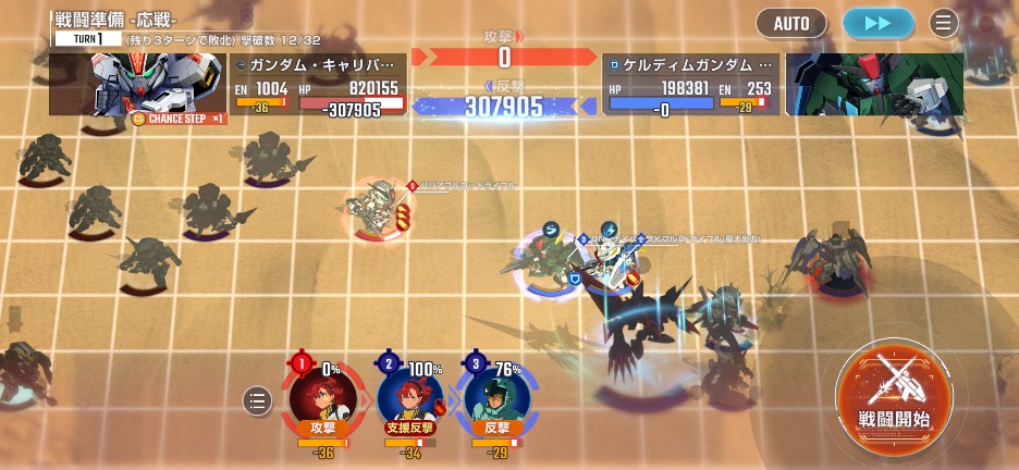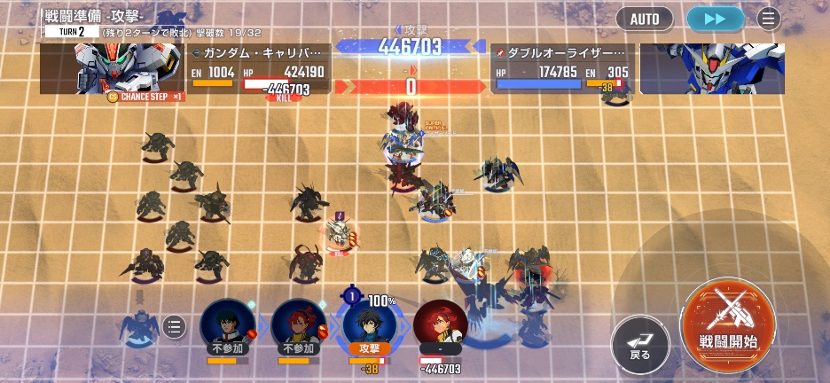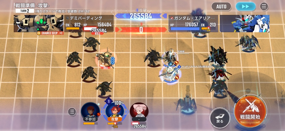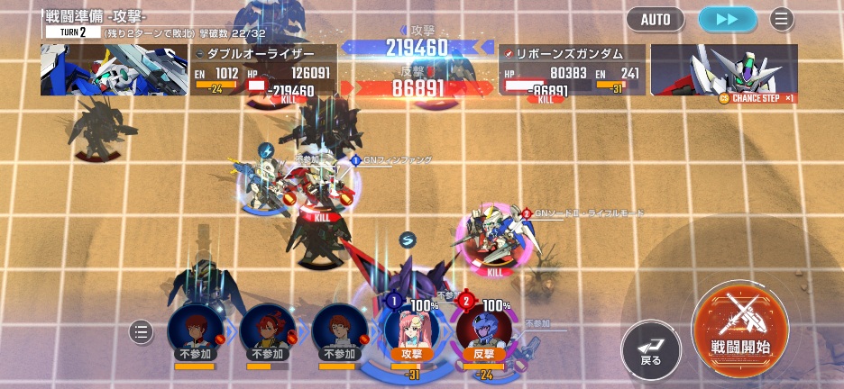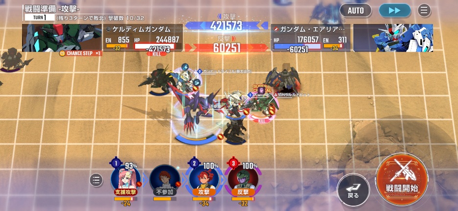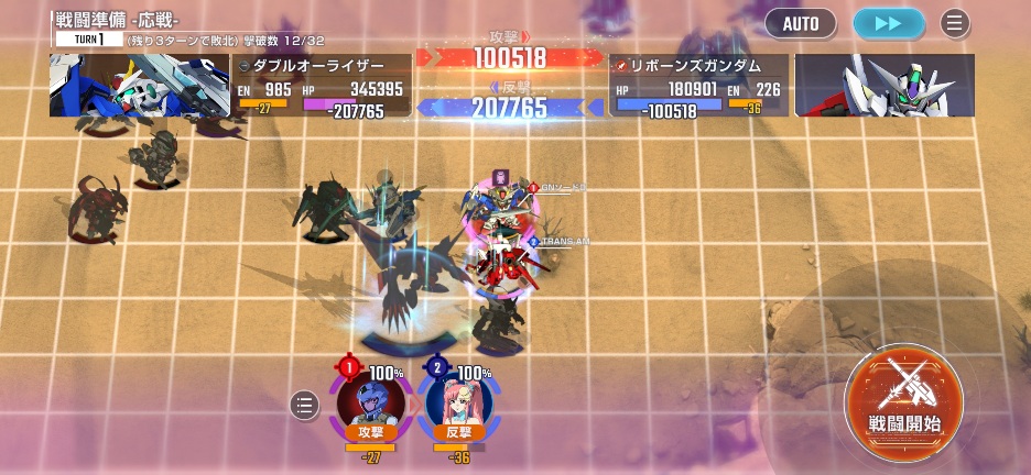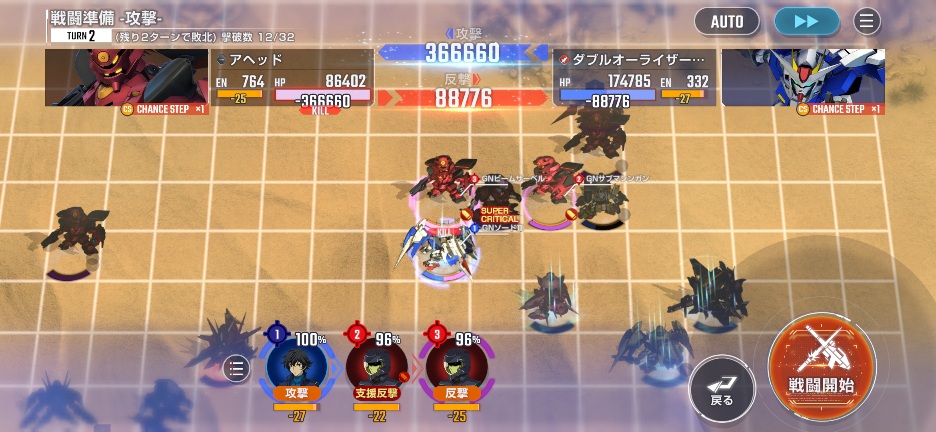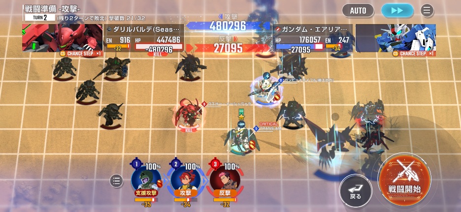 エアリアル改修型を画像位置に移動させてリボーンズガンダムの支援を入れてケルディムを撃破