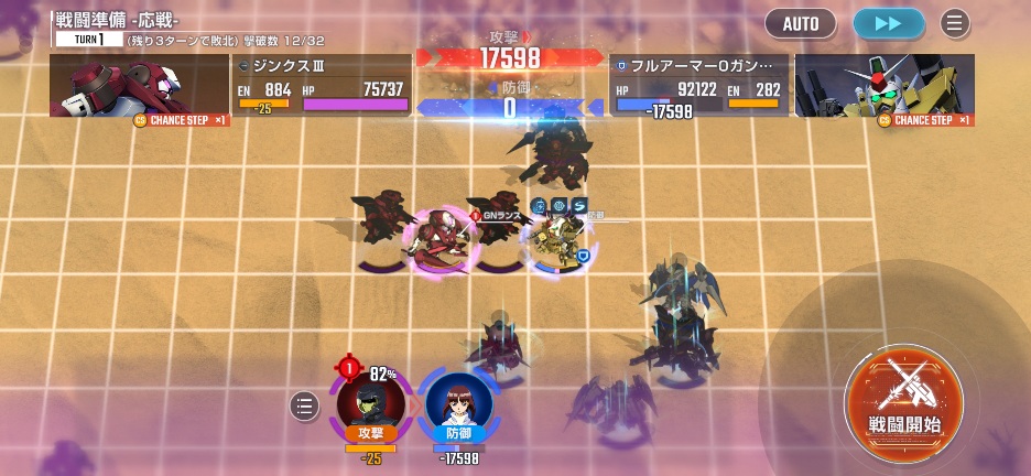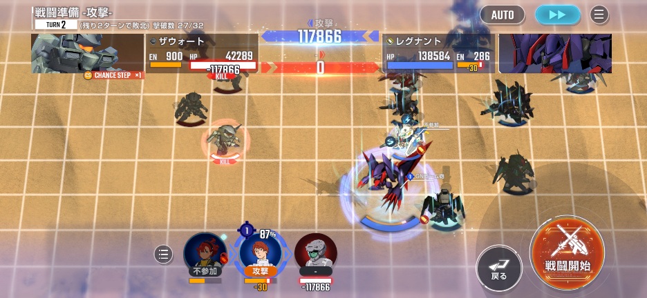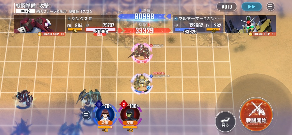 戦艦スキルを使ってフルアーマー0ガンダムのHPを回復