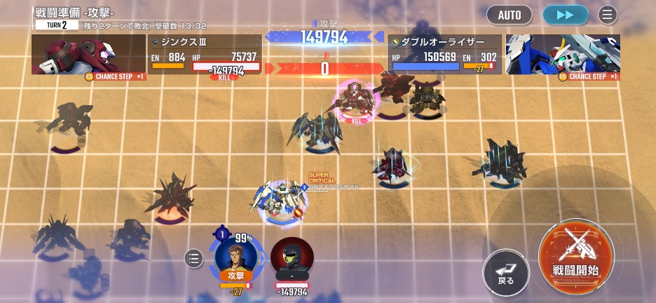 ダブルオーライザーを画像位置に移動させてジンクスⅢを撃破