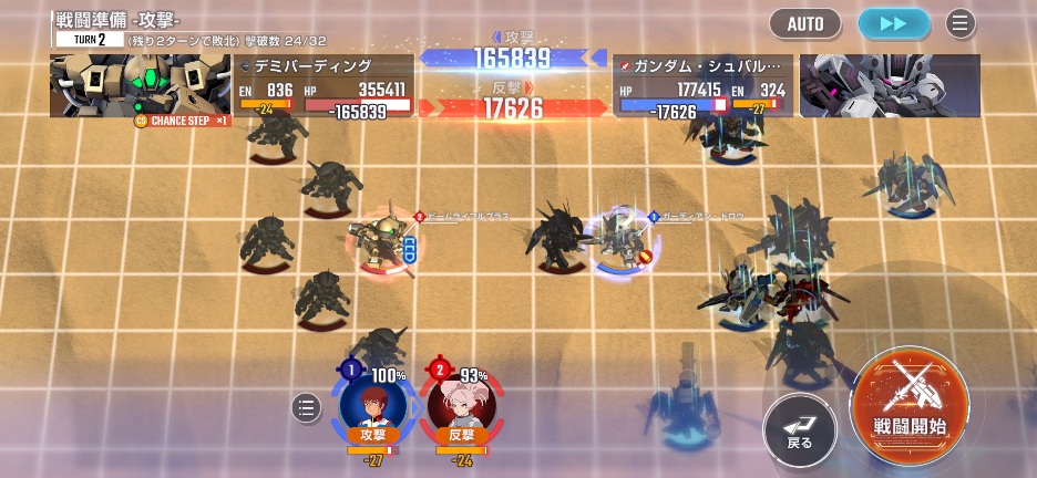 シュバルゼッテを画像位置に移動させてアルケーを撃破