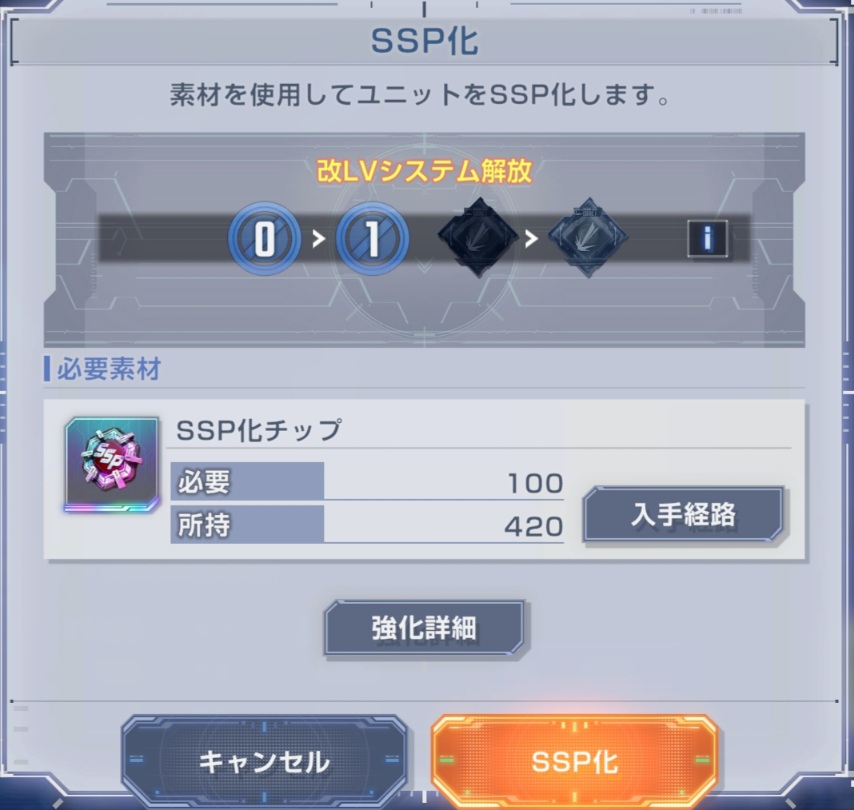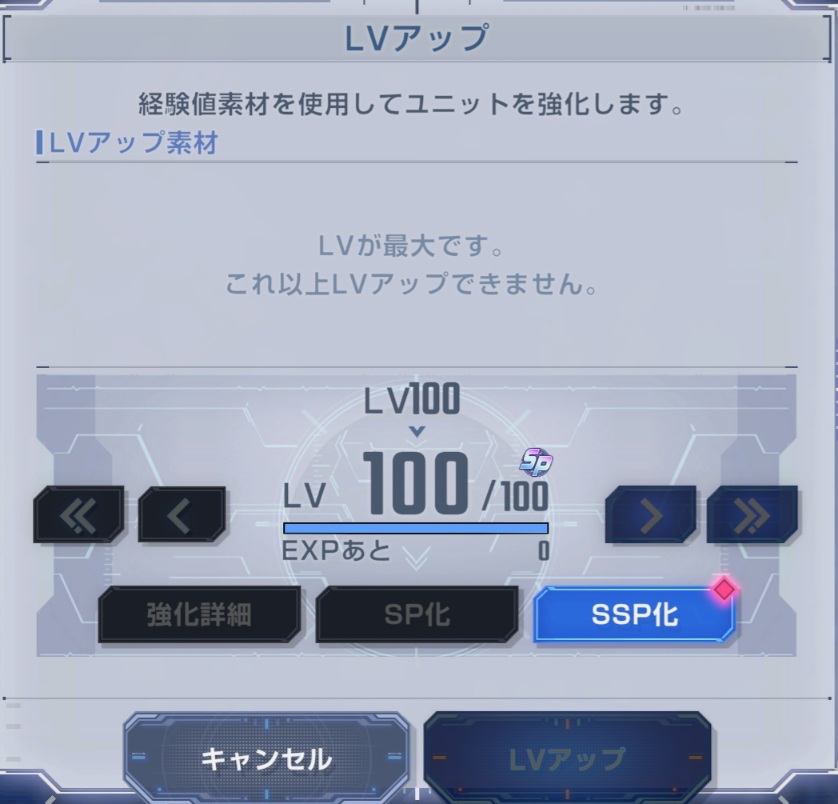 SP化した機体のLV強化をタップしてSSP化をタップしよう